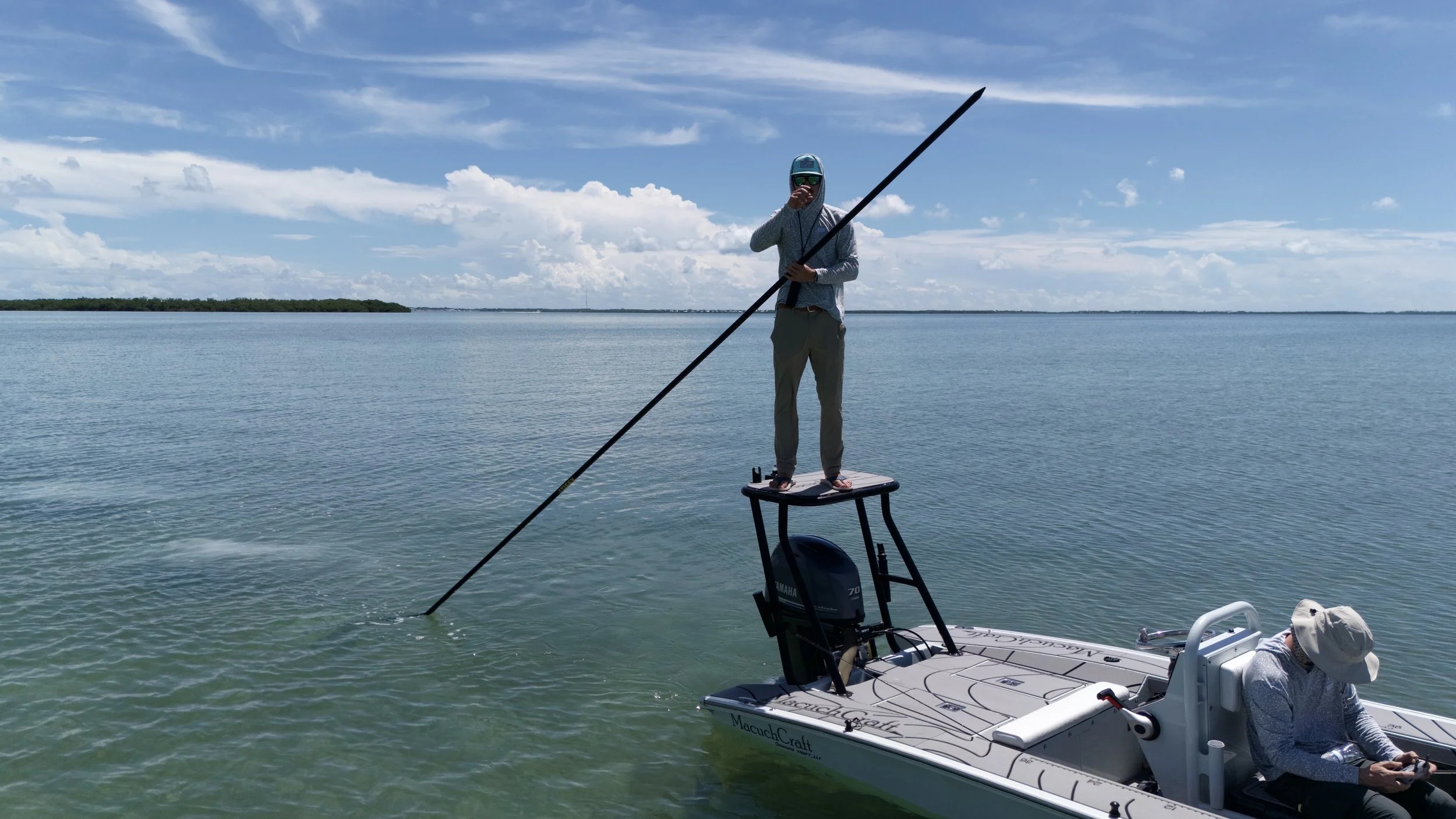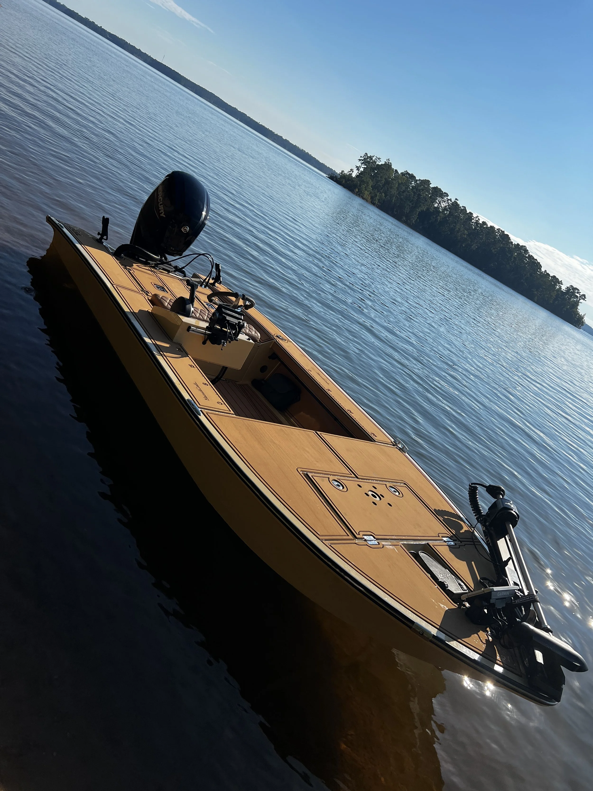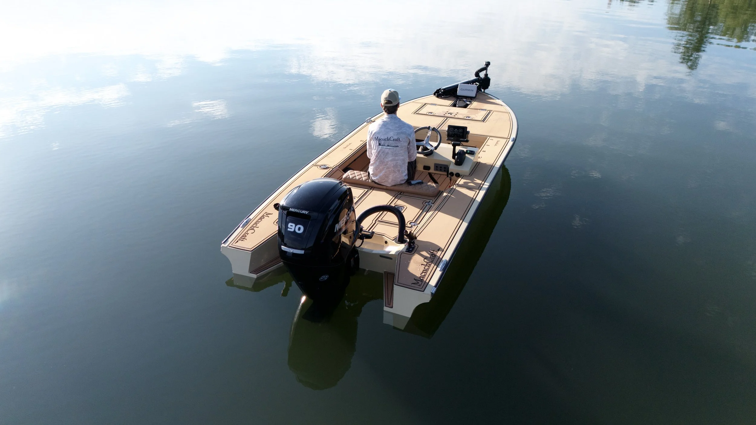 Measuring 17’5” in length with a generous 77” beam, it boasts expansive forward and aft casting decks, wide walkable gunwales, and ample space for three adults to fish in comfort. Despite its size, it draws less than 10” of water when fully loaded for a day on the water.