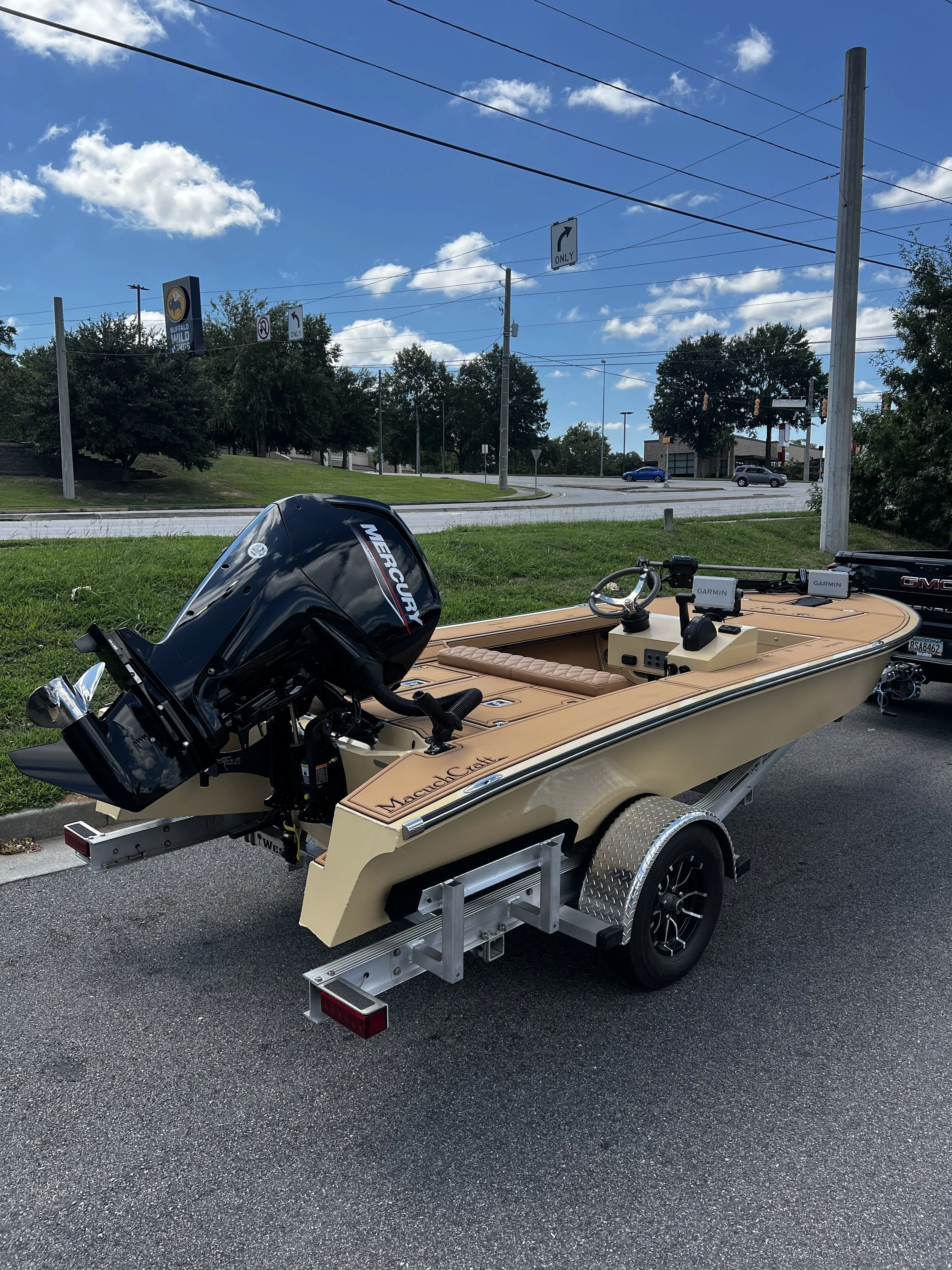 Even when docked, the Enterprise 17 demands attention. Its elegant sheer line tapers aft toward the waterline, complemented by an aggressively raked stern and a distinctive aft deck layout—creating a look that stands apart from any other boat on the water. Its not just another skiff, it’s a statement.